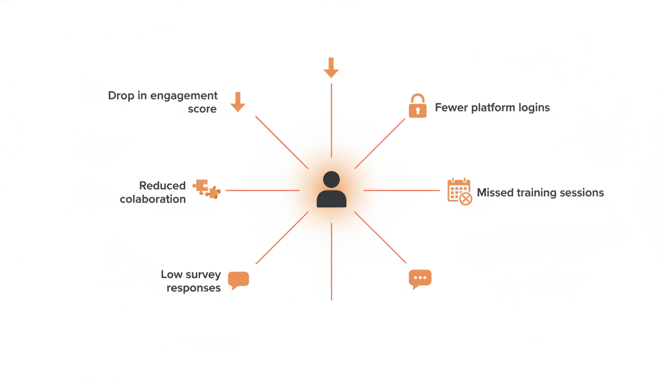 AI retention tools track early warning signals. Drops in engagement scores. Fewer logins to internal platforms. Missed trainings. Patterns that individually mean nothing. Together, they mean a lot.