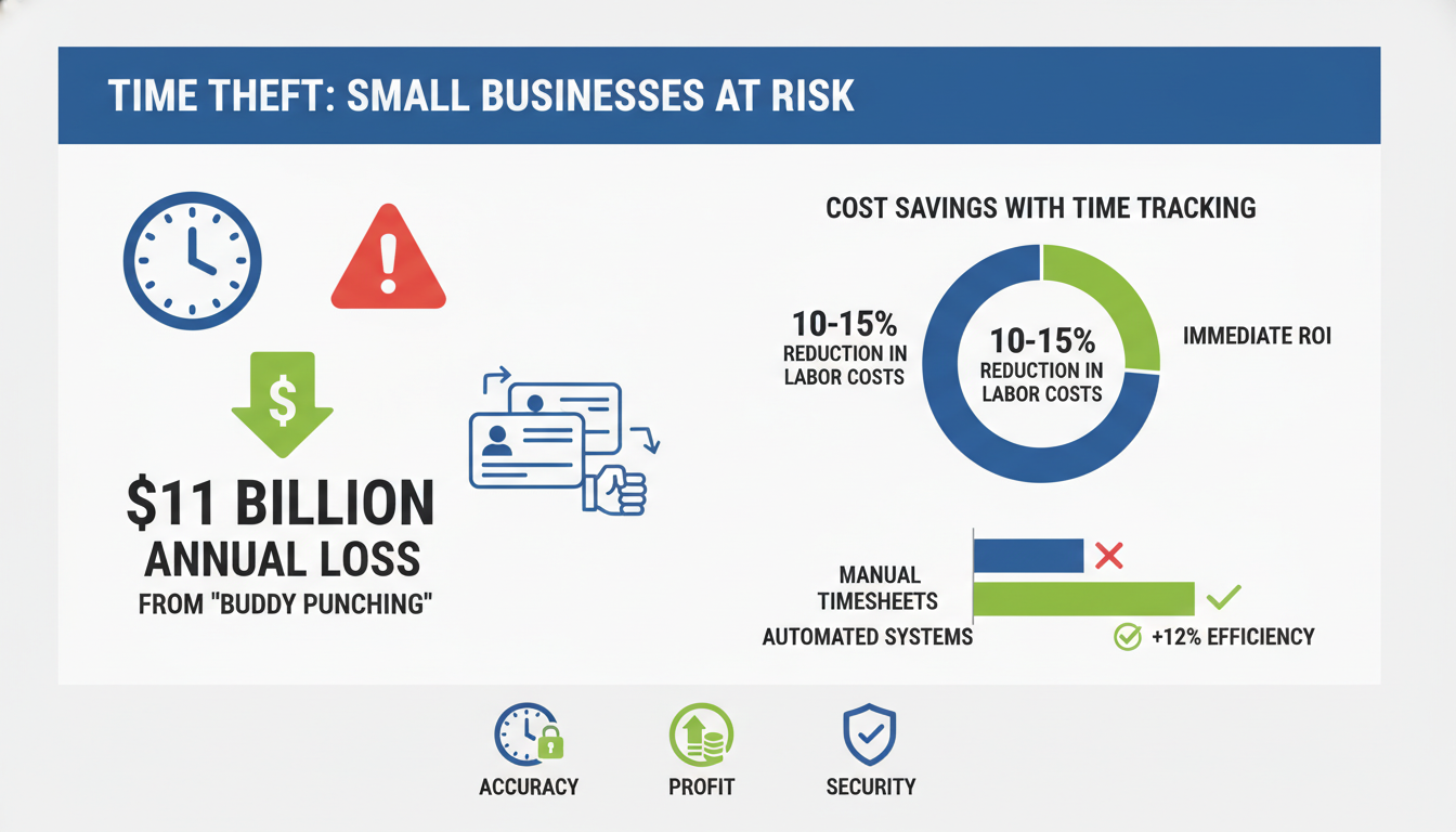 Time theft costs American businesses over $11 billion every year, according to the American Payroll Association. Buddy punching happens when one employee clocks in for another who is running late or absent.