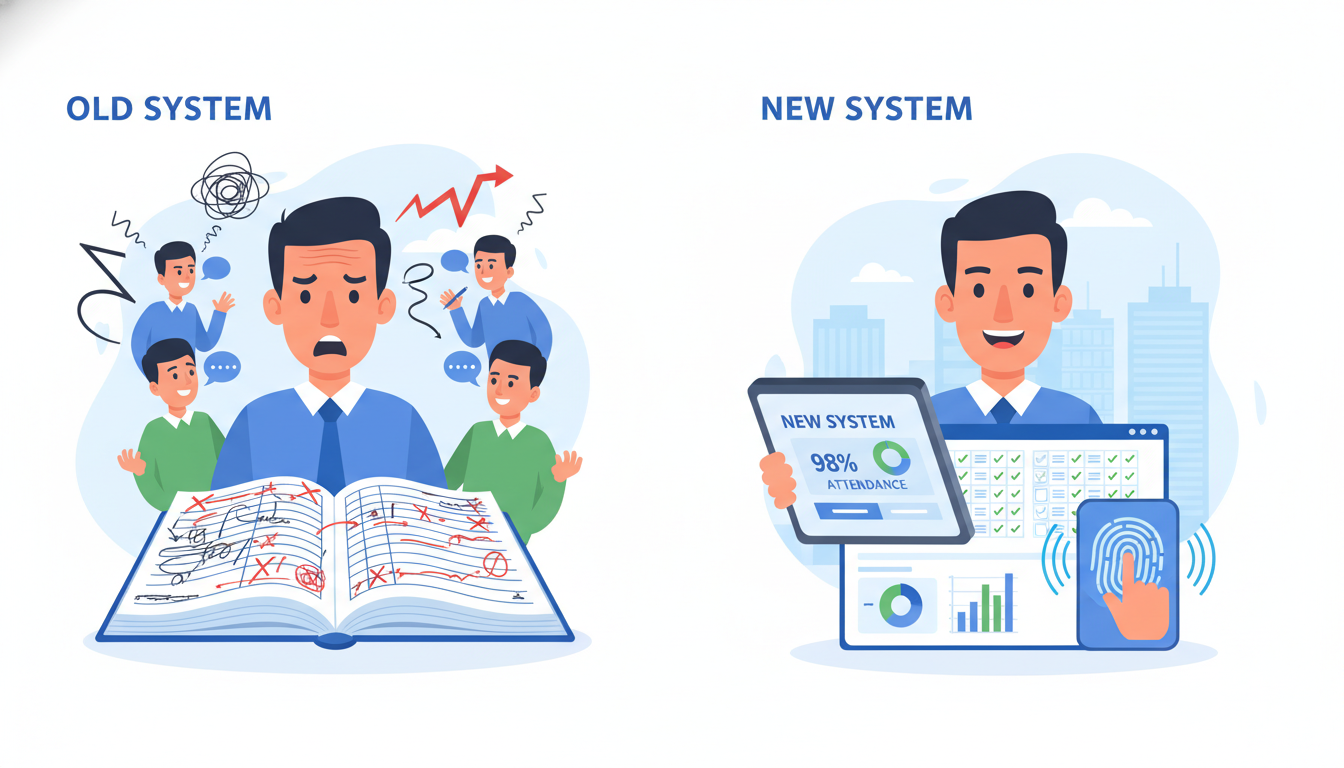Old attendance methods create gaps in tracking. Manual books get lost or damaged. Supervisors can’t always verify who arrived when. Disputes about working hours become common headaches.