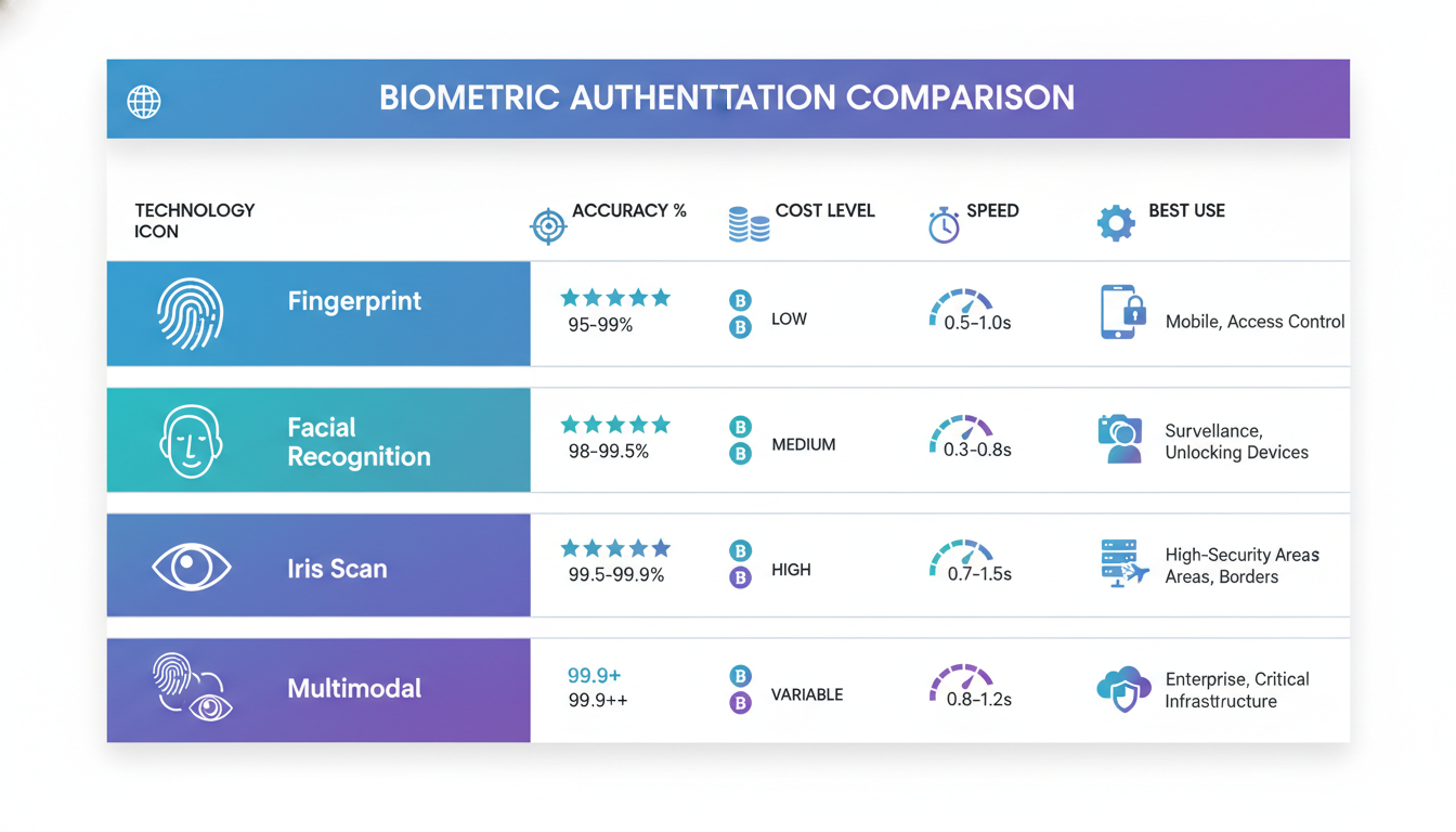 Multimodal systems combine two or more biometric types like fingerprint plus facial recognition. This provides higher accuracy and better handling of edge cases.