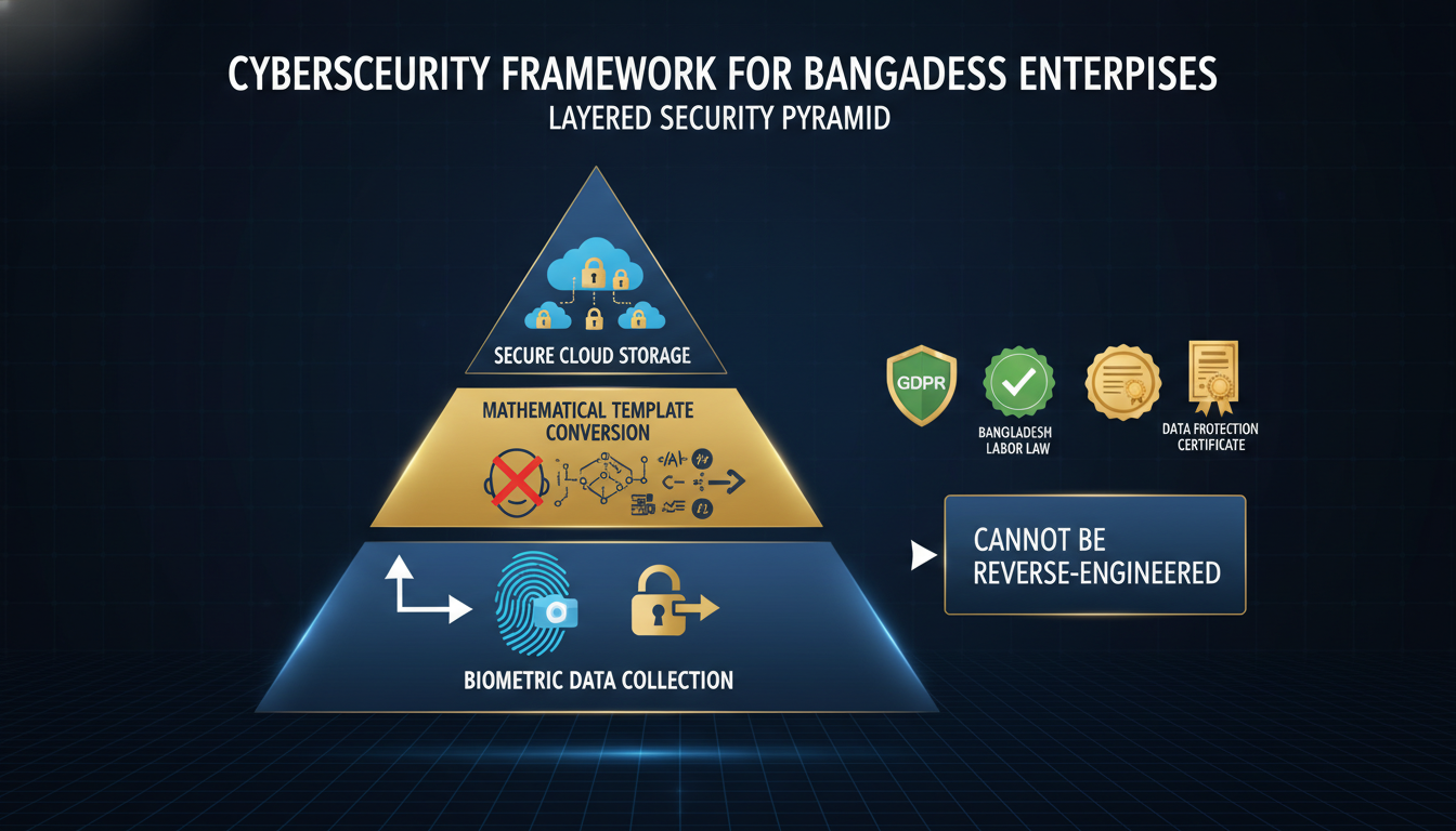 Choose vendors who encrypt biometric templates both in storage and in transit. The mathematical templates stored in the system should use one-way hashing that prevents reconstruction of the original biometric data.