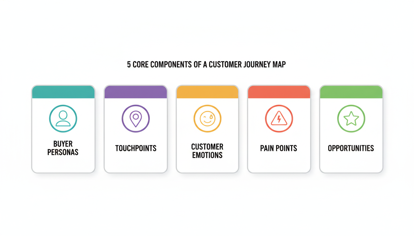 Now that you know the stages, let’s look at what actually goes inside a customer journey map. These are the building blocks that make the map useful, not just pretty.