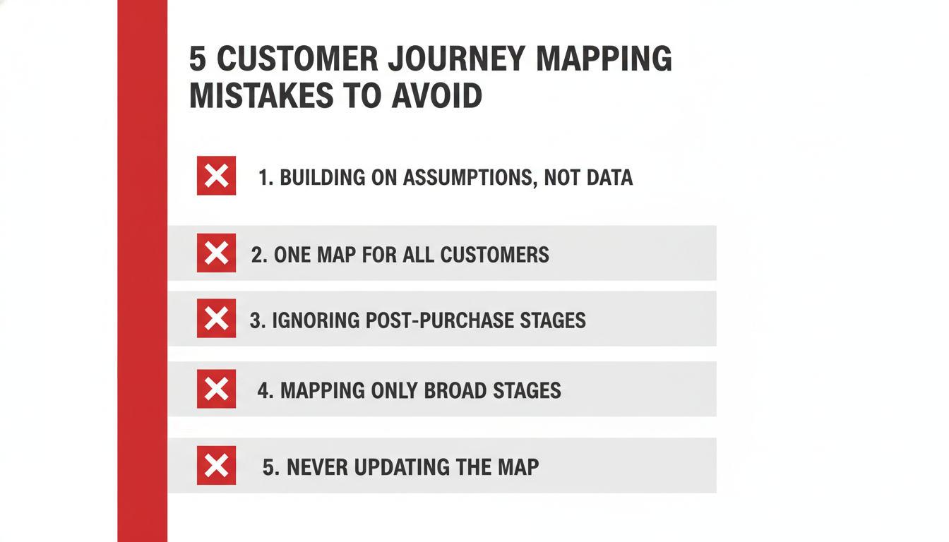 The biggest mistake. If your map is based on what you think customers experience, rather than what they actually experience, it will lead you in the wrong direction. Always ground your map in real data.