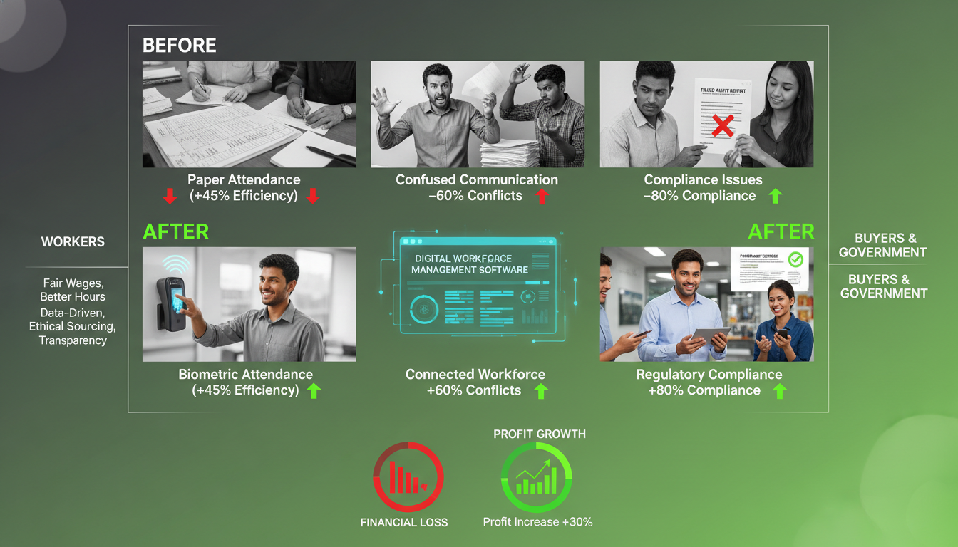 Workforce management software shows clear data to everyone. Workers see their pay. Managers see attendance. Buyers see compliance. Government sees reports. Everyone trusts the same information. This stops fights.