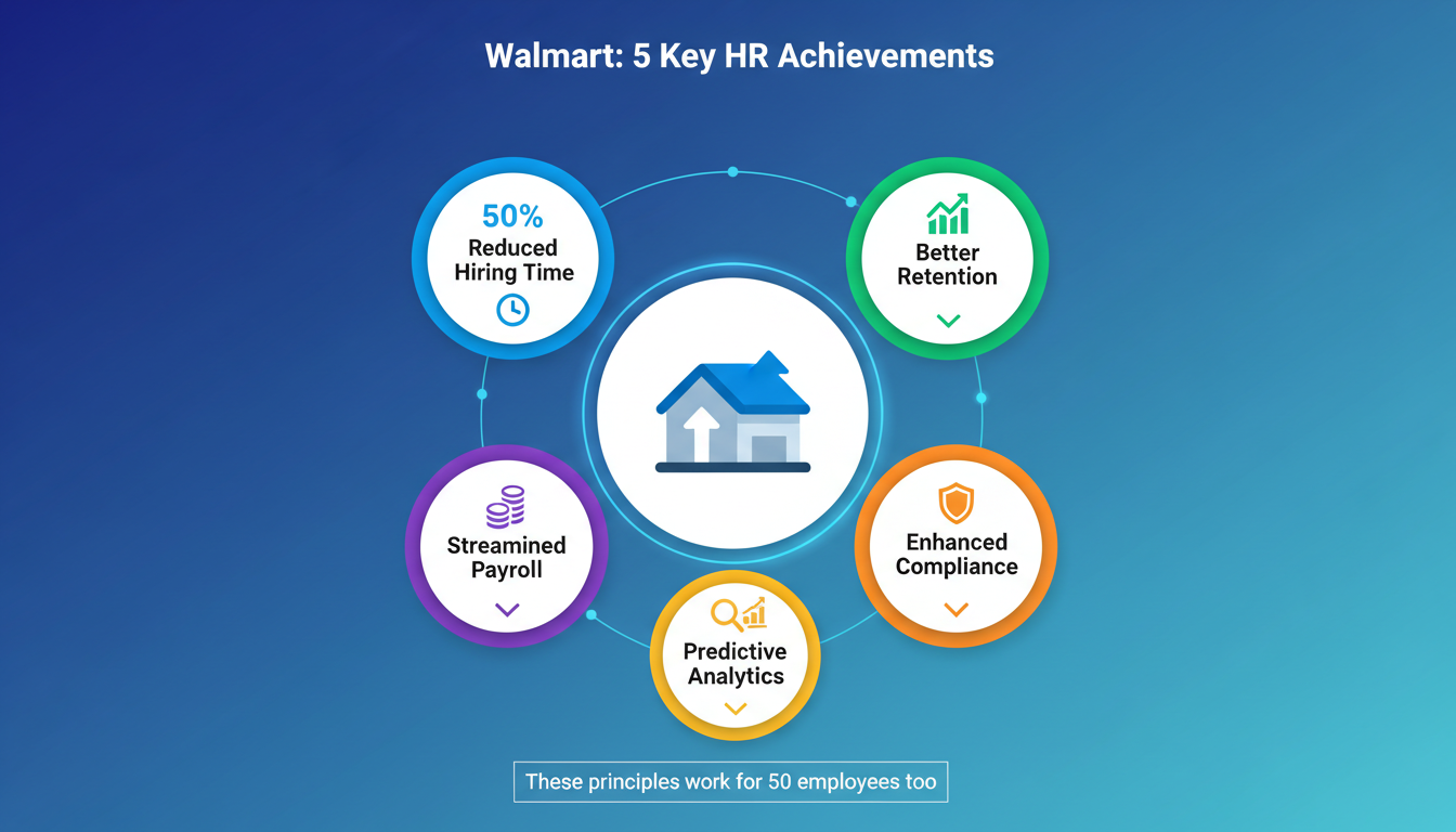 Walmart’s HR team doesn’t spend time collecting timesheets or calculating basic payroll. Automation handles routine tasks. This frees HR professionals to work on retention, training, culture, and strategic planning.