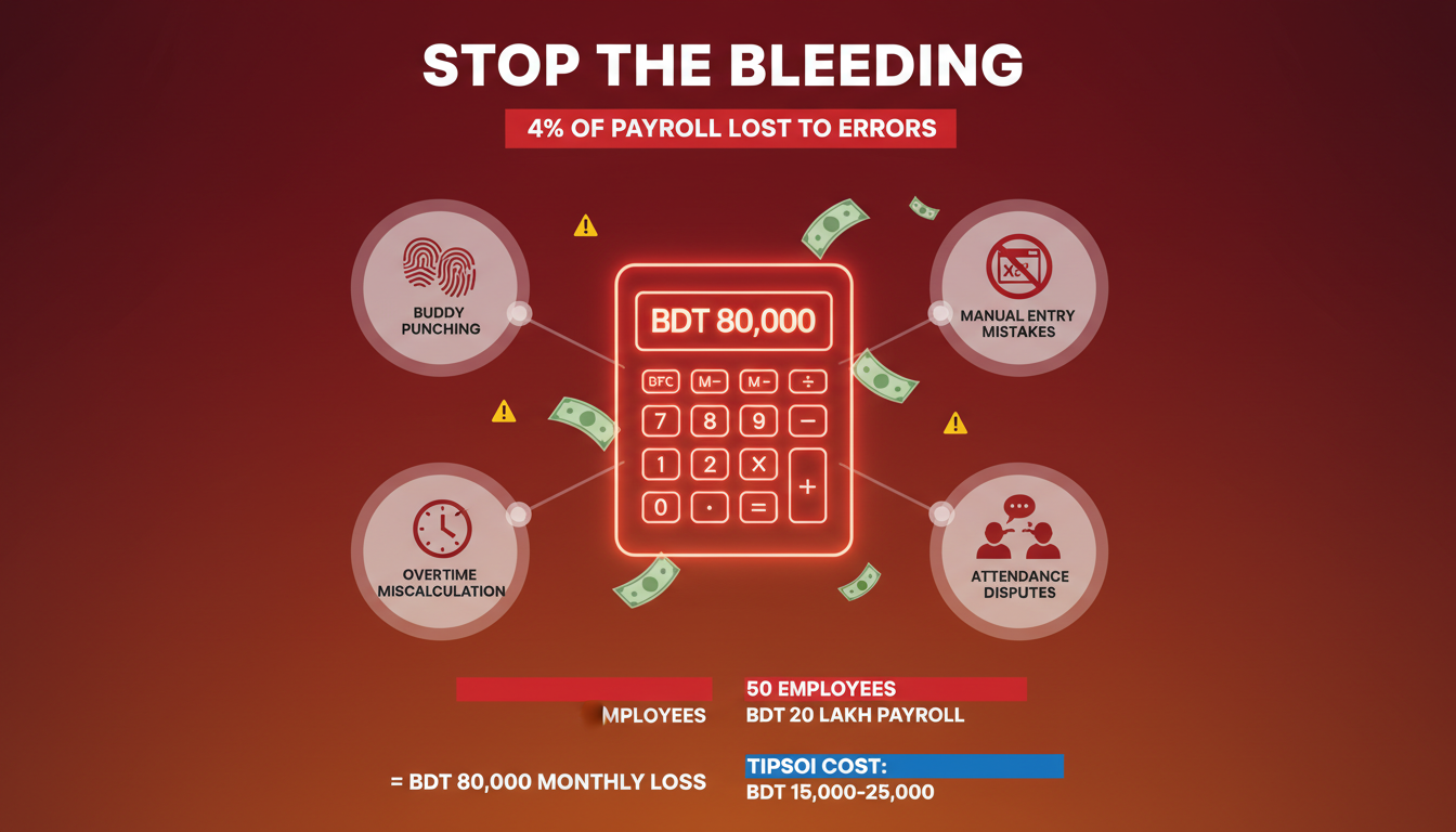 This isn’t just annoying. It’s expensive. Studies show that manual time tracking systems cost businesses up to 4% of total payroll due to errors and buddy punching. For a company with 50 employees and a monthly payroll of BDT 20 lakh, that’s BDT 80,000 disappearing every month.